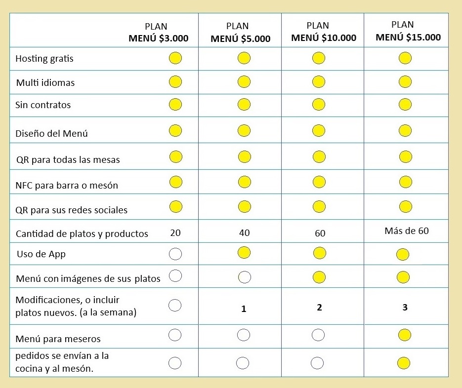 A cualquier Menú que usted elija, se le puede incorporar una App. La App trae, opciones importantes para su emprendimiento. Por ejemplo: botón de reservas, botón de chat, horario de atención, ofertas de la semana, botón de sus redes sociales, mapa para llegar a su local, QR para ser compartida, etc.